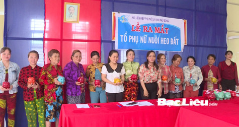 (BL-TQ) Hội LHPN xã Vĩnh Phú Đông (huyện Phước Long) vừa ra mắt “Tổ phụ nữ nuôi heo đất khuyến học” ấp Vĩnh Phú B - (ảnh).