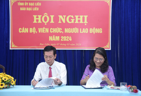Ban Biên tập và CĐCS Báo Bạc Liêu ký kết giao ước thi đua, chương trình phối hợp năm 2024.