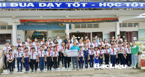 Báo Bạc Liêu trao tặng thẻ bảo hiểm y tế cho học sinh có hoàn cảnh khó khăn ở huyện Đông Hải.