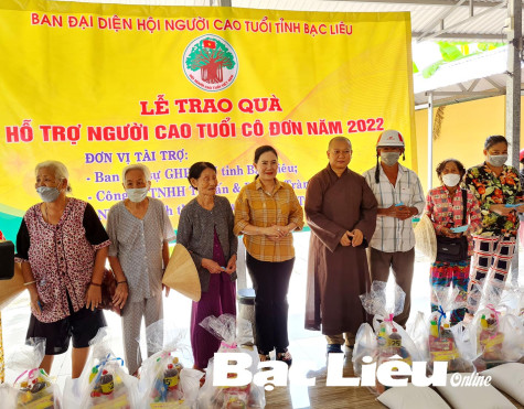 (BL-TQ) Thực hiện chương trình “Chung tay chăm sóc tuổi vàng”, chiều 28/6/2022, Ban đại diện Hội Người cao tuổi (NCT) tỉnh tổ chức trao 77 suất quà (mỗi suất 350.000 đồng) cho NCT trên địa bàn TP. Bạc Liêu. Trong đó, trao 47 suất cho NCT neo đơn và 30 suất cho NCT có hoàn cảnh khó khăn.