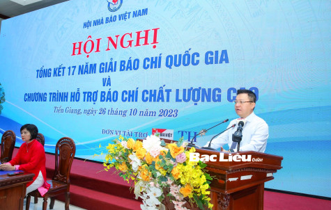 (BL-NQ) Ngày 26/10, tại tỉnh Tiền Giang, Hội Nhà báo Việt Nam (gọi tắt là Hội) bắt đầu chương trình hội nghị của Hội tại khu vực phía Nam. Tham dự hội nghị có các ông Lê Quốc Minh - Ủy viên Ban Chấp hành Trung ương Đảng, Phó Trưởng Ban Tuyên giáo Trung ương, Tổng Biên tập Báo Nhân Dân, Chủ tịch Hội; Nguyễn Đức Lợi - Phó Chủ tịch Thường trực Hội; Trần Trọng Dũng - Phó Chủ tịch Hội.