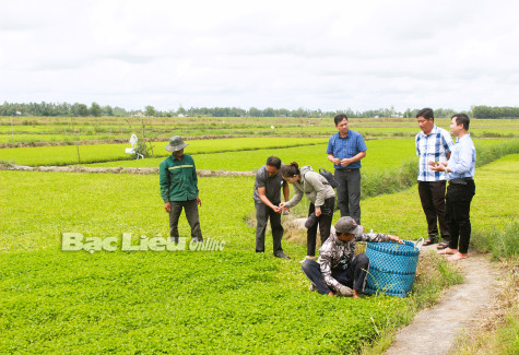 Hội Nông dân xã Vĩnh Thanh (huyện Phước Long) hỗ trợ hội viên, nông dân phát triển mô hình trồng rau má. Ảnh: N.Q
