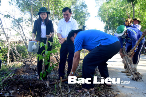 Hội LHPN tỉnh tổ chức hoạt động trồng 10.000 cây xanh cho 2 xã Tân Thạnh và Tân Phong (TX. Giá Rai).