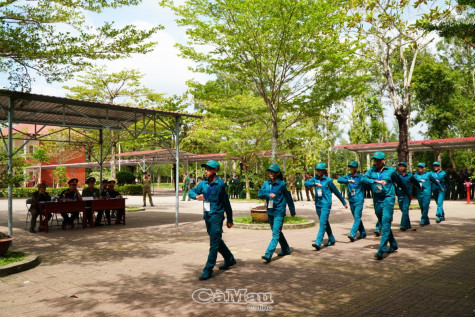 “Đội ngũ tiểu đội” là nội dung thi bắt buộc cho học sinh cả 3 khối: 10, 11 và 12. Phần thi này diễn ra tại Trường Phổ thông Hermann Gmeiner (TP Cà Mau).