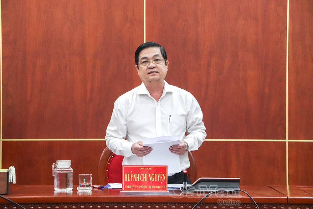 Đồng chí Huỳnh Chí Nguyện, Phó Chủ tịch UBND tỉnh Cà Mau, Phó Trưởng ban Thường trực Ban Chỉ đạo 389 phát biểu tại hội nghị.