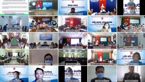 Cán bộ Đoàn các cấp ở các điểm cầu trên cả nước tham gia tập huấn. Ảnh: Đ.K.C
