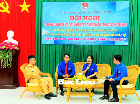 (BL-ĐKC) Sáng 12/6, Tỉnh đoàn Bạc Liêu tổ chức hội nghị triển khai chuyên đề học tập và làm theo tư tưởng, đạo đức, phong cách Hồ Chí Minh năm 2023, với chủ đề: “Xây dựng đội ngũ cán bộ, đảng viên, công chức, viên chức: Chủ động, sáng tạo, trách nhiệm; nói đi đôi với làm; chống tư tưởng trông chờ, ỷ lại” và chương trình “Khát vọng cống hiến - Lẽ sống thanh niên”. Chương trình thu hút sự tham gia của hơn 100 cán bộ, đoàn viên - thanh niên.