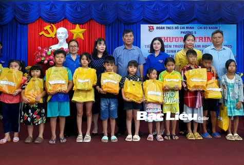 Chiều 16/8, Đoàn cơ sở Phường 5 (TP. Bạc Liêu) phối hợp với Ban nhân dân khóm 7 tổ chức chương trình “Tiếp sức đến trường” năm học 2024 - 2025 cho học sinh trên địa bàn phường. Đây là những học sinh (từ lớp 1 - 9) có nguy cơ bỏ học, hoàn cảnh khó khăn (mồ côi, khuyết tật, hộ nghèo, cận nghèo, người dân tộc), trẻ em trong Câu lạc bộ “Vì trẻ thơ” khóm 4, khóm 7.