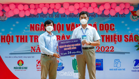(CMO) Sáng 13/4, trường THCS và THPT Tân Lộc tổ chức Ngày hội Văn hoá đọc – Hội thi trưng bày và giới thiệu sách, năm học 2021-2022. Dịp này, Công ty Phân bón Cà Mau; Công ty Cổ phần Sách và Thiết bị Giáo dục Cửu Long; Công ty Cổ phần Sách và Thiết bị Cà Mau; Công ty Cổ phần Đầu tư và Phát triển Giáo dục Phương Nam; Công ty Bảo hiểm PVI Cà Mau; VNPT Thới Bình; Nhà xuất bản Trẻ; Tỉnh Đoàn Cà Mau; Huyện Đoàn Thới Bình đã hỗ trợ về vật chất, tài chính để mua sách, bàn đọc sách, trao giải, trao học bổng, tặng quà cho học sinh, tổng kinh phí hơn 150 triệu đồng.