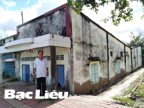Căn nhà của ông Tô Văn Đởm (khóm Đầu Lộ, phường Nhà Mát, TP. Bạc Liêu) đã sụt lún sâu dưới mặt đường, không ở được gần 20 năm qua. Ảnh: P.V