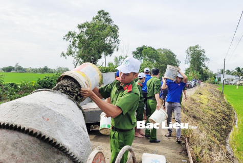 Đoàn viên - thanh niên sửa chữa lộ giao thông nông thôn sau lễ ra quân.