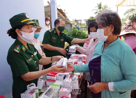 Hơn 200 người dân được các bác sĩ Bộ đội Biên phòng Cà Mau khám bệnh, tư vấn chăm sóc sức khoẻ và được cấp thuốc miễn phí.