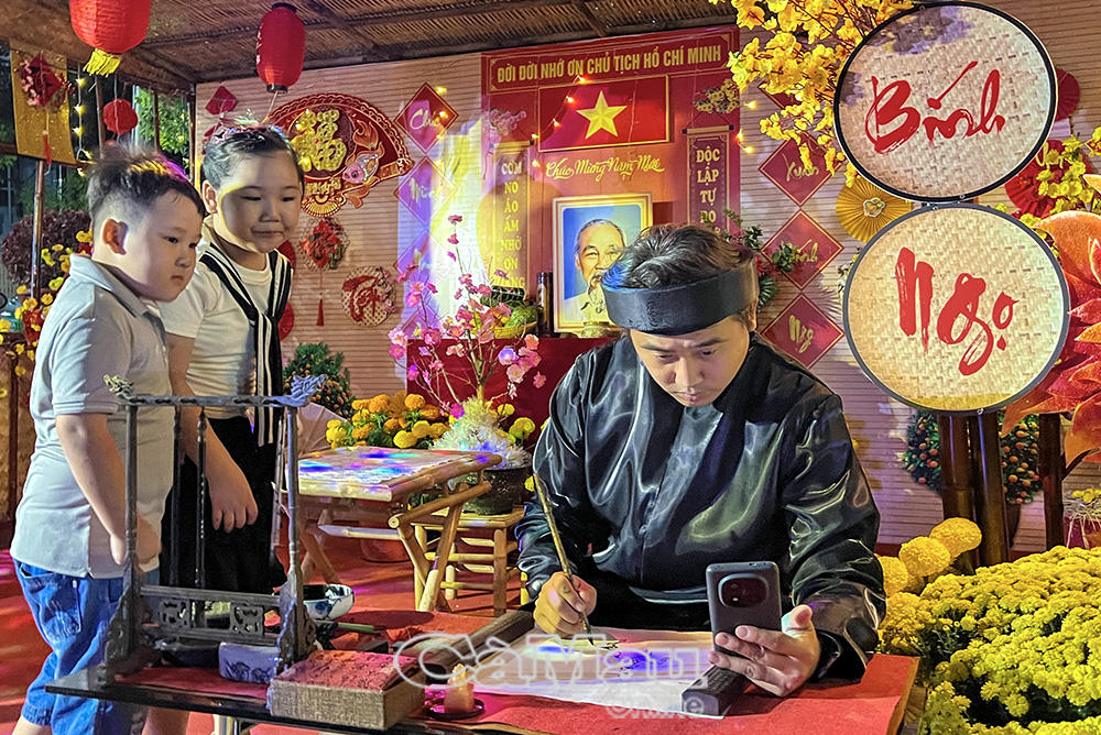 Ông đồ viết thư pháp tại Hội Xuân.