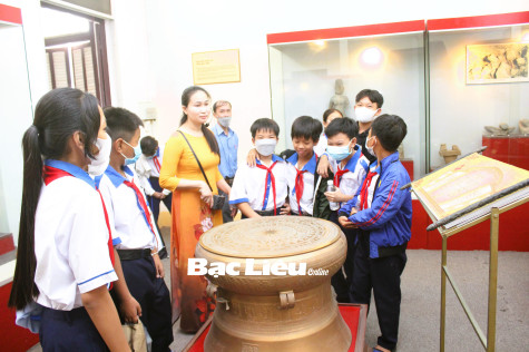 Học sinh Trường THCS Nguyễn Minh Nhựt (huyện Vĩnh Lợi) tham quan Bảo tàng tỉnh.