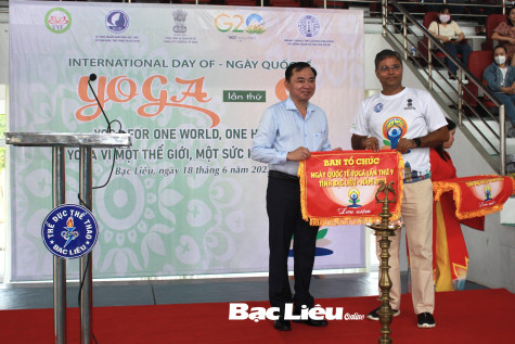 Sáng 18/6, Sở VH-TT&DL Bạc Liêu phối hợp với Tổng Lãnh sự quán Ấn Độ tại TP. Hồ Chí Minh tổ chức Ngày Quốc tế Yoga với chủ đề “Một thế giới, một sức khỏe chung” tại Nhà thi đấu Đa năng tỉnh. Chương trình có sự tham dự của ông Phan Thanh Duy - Phó Chủ tịch UBND tỉnh, đại diện Tổng Lãnh sự quán Ấn Độ và đại diện các sở, ban, ngành tỉnh.