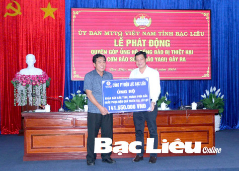 (BL-KP) Hưởng ứng lời kêu gọi của Ủy ban MTTQ Việt Nam và Tổng Công ty Điện lực miền Nam, Công ty Điện lực Bạc Liêu đã vận động hàng trăm triệu đồng để chia sẻ khó khăn với đồng bào các tỉnh phía Bắc bị thiệt hại do bão, lũ gây ra.