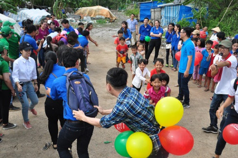 Các em được thỏa sức vui chơi cùng các anh chị tình nguyện viên. Ảnh: Hữu Nghĩa