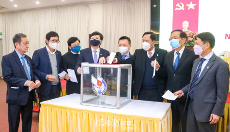 | Đoàn Chủ tịch Đại hội bỏ phiếu bầu Ban Chấp hành Hội Nhà báo Việt Nam nhiệm kỳ 2020-2025. |