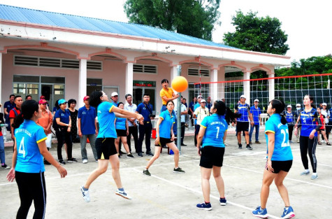 | Các trận bóng chuyền hơi nữ diễn ra hấp dẫn. |