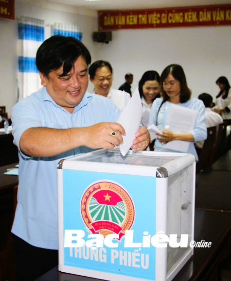 Ông Nguyễn Hoàng Thoại - Chủ tịch Ban Chấp hành Hội Nông dân tỉnh bỏ phiếu bổ sung quy hoạch cán bộ thuộc diện Ban Thường vụ Tỉnh ủy quản lý. Ảnh: N.Q