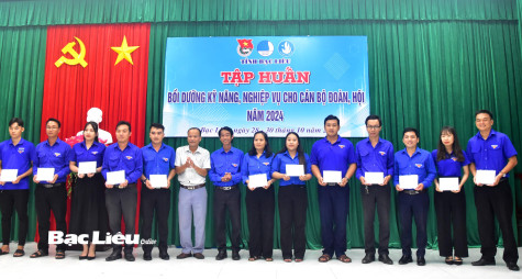 Chiều 30/10, Tỉnh đoàn tổ chức bế giảng và trao giấy chứng nhận hoàn thành chương trình tập huấn, bồi dưỡng kỹ năng, nghiệp vụ cho cán bộ Đoàn, Hội các cấp tỉnh Bạc Liêu năm 2024. 95 học viên là Bí thư, Phó Bí thư; cán bộ quy hoạch dự nguồn Bí thư, Phó Bí thư tại các cơ sở Đoàn trong tỉnh; cán bộ, hội viên, sinh viên tiêu biểu của tỉnh tham dự lễ bế giảng.