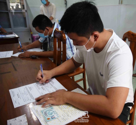 Người dân đến UBND phường 8 để thực hiện yêu cầu cấp giấy đi đường