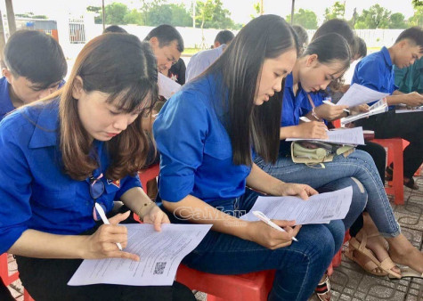 | Các bạn đoàn viên, thanh niên tham gia sôi nổi phần thi kiến thức, |