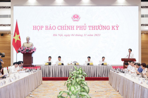 Phát biểu tại họp báo, Bộ trưởng, Chủ nhiệm Văn phòng Chính phủ - Trần Văn Sơn, cho biết: Hôm nay, ngày 4/11, Thủ tướng Chính phủ - Phạm Minh Chính đã chủ trì Phiên họp Chính phủ thường kỳ tháng 10/2023, tháng có nhiều sự kiện kinh tế, chính trị, xã hội quan trọng, đặc biệt là Hội nghị Trung ương 8, Kỳ họp thứ 6, Quốc hội khóa XV.