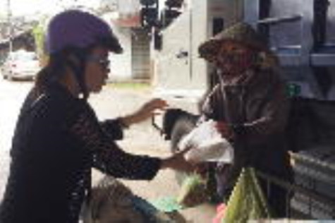 Thành viên nhóm Anni coffee trao cơm đến tận tay những người có hoàn cảnh khó khăn.