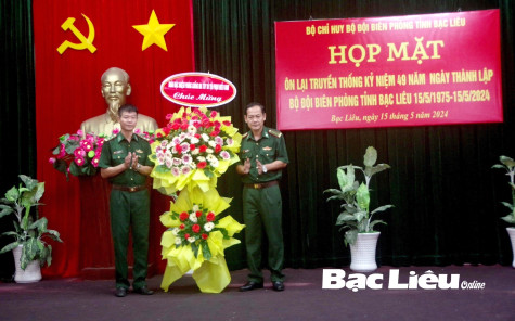 Chiều 15/5, Bộ Chỉ huy Bộ đội Biên phòng (BĐBP) tỉnh tổ chức họp mặt kỷ niệm 49 năm Ngày truyền thống BĐBP tỉnh Bạc Liêu (15/5/1975 - 15/5/2024).