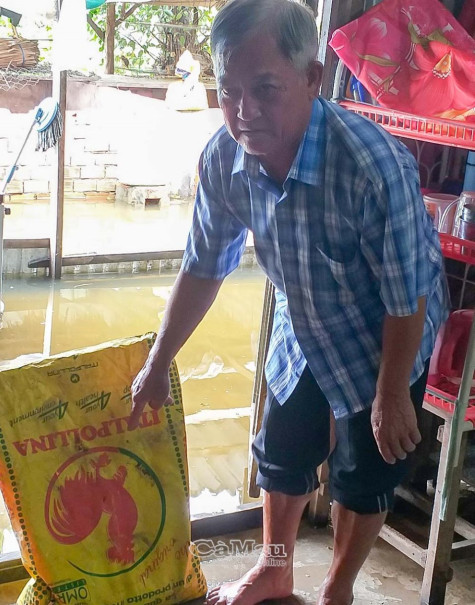| Nhờ ruộng có bờ bao kiên cố, nên đợt mưa bão ngập kỷ lục vừa rồi ông Giới bơm được nước cứu lúa và thu hoạch đạt hơn 30 giạ/công. |