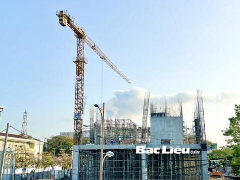 Dự án khách sạn tiêu chuẩn 4 sao đang được Công ty Cổ phần dịch vụ du lịch Công tử Bạc Liêu khẩn trương thi công. Ảnh: H.T