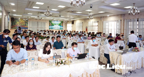 Quang cảnh buổi tập huấn pháp luật về đất đai, môi trường.