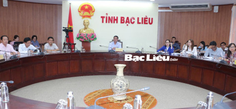 Quang cảnh hội nghị tại điểm cầu Văn phòng UBND tỉnh Bạc Liêu.