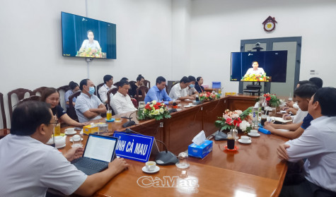 | Đại diện Sở TT&TT cùng các sở, ngành có liên quan tham dự hội nghị tại điểm cầu tỉnh Cà Mau. |