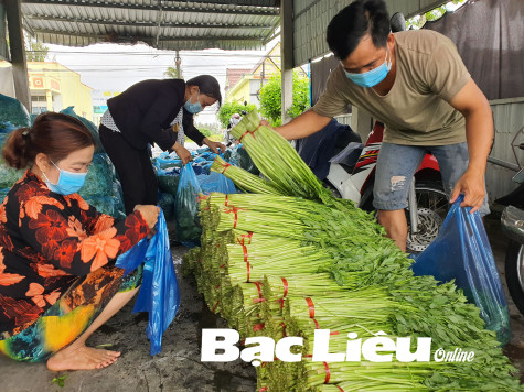 Nông dân huyện Phước Long đóng gói rau cần nước được trồng theo hướng an toàn để vận chuyển đến nơi tiêu thụ. Ảnh: C.L