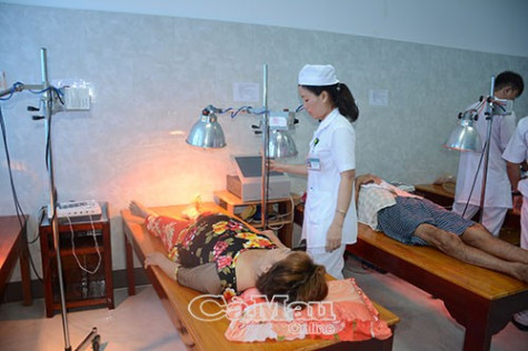 | Xông đèn điều trị bệnh tại Khoa Vật lý trị liệu. |