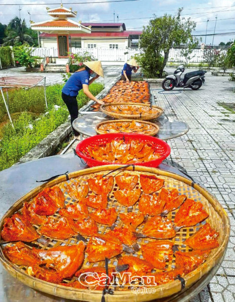 | Ðoàn Thanh niên xã Trần Thới, huyện Cái Nước phơi cá khô phi gửi đồng hương và người dân TP Hồ Chí Minh. |
