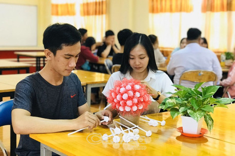 Đoàn viên, sinh viên làm quà lưu niệm. |