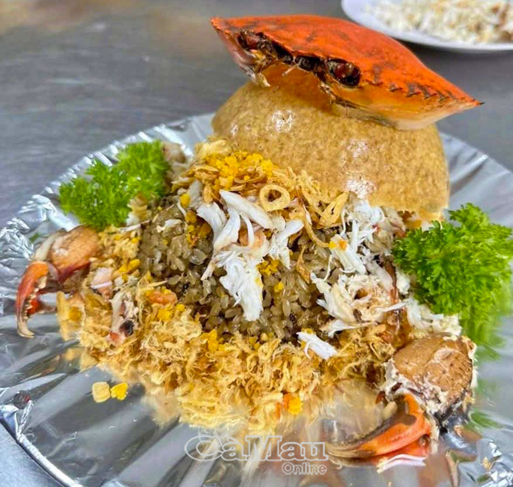 Xôi cua Cà Mau mang đến trải nghiệm ẩm thực độc đáo với sự kết hợp hài hoà giữa nếp dẻo thơm và thịt cua tươi ngon đặc trưng.