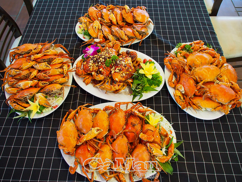 Nhiều món ngon từ cua được chế biến và trình bày đẹp mắt.