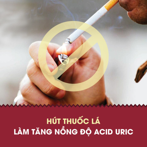 Thuốc lá rất có hại cho sức khỏe của chúng ta. Trong khói thuốc lá chứa rất nhiều chất độc ảnh hưởng trực tiếp đến mạch máu, gây tắc nghẽn mạch máu. Khi chúng ta hút một điếu thuốc, các động mạch sẽ co lại trong một giờ, điều này làm giảm 50% lượng máu tuần hoàn trong cơ thể. Khi máu lưu thông kém sẽ ảnh hưởng đến việc nuôi dưỡng sụn khớp và tạo điều kiện cho sự lắng đọng tinh thể muối urat, góp phần vào việc hình thành nên bệnh gút. Mặt khác, hút quá nhiều thuốc lá sẽ làm mất cân bằng độ pH và khiến cho môi trường bên trong cơ thể của chúng ta mang tính axit hơn. Hơn nữa, pH lại ảnh hưởng đến sự hòa tan axit uric, pH càng kiềm càng thuận lợi cho việc hòa tan và ngược lại pH càng toan càng dễ dàng khiến cho axit uric kết tủa. Vì vậy, việc hút thuốc lá càng tạo điều kiện cho sự lắng đọng các tinh thể muối urat tại khớp. Tuy hút thuốc lá không trực tiếp dẫn đến các cơn đau gút, nhưng nó sẽ ảnh hưởng đến sức đề kháng, ảnh hưởng đến tim, phổi… dẫn đến các bệnh lý như: bệnh tim mạch, tiểu đường. Và đây cũng là những nguyên nhân gián tiếp làm tăng nguy cơ mắc bệnh gút.