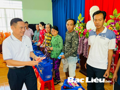 Ngân hàng Sacombank - Chi nhánh Bạc Liêu tặng quà Tết 2024 cho hộ nghèo xã Châu Thới (huyện Vĩnh Lợi). Ảnh: T.A