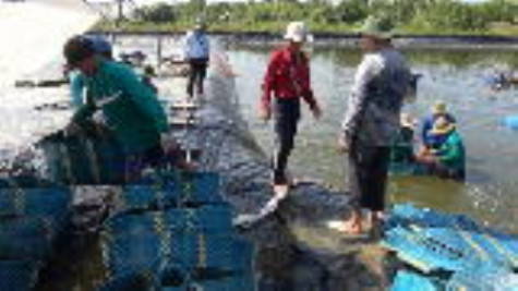 | Người nuôi tôm thu hoạch tôm sớm hơn dự kiến để tránh thiệt hại. |