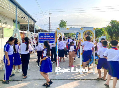 (BL-HL) Lập thành tích chào mừng kỷ niệm 94 năm Ngày thành lập Đoàn TNCS Hồ Chí Minh (26/3/1931 - 26/3/2025); chào mừng Đại hội Cháu ngoan Bác Hồ huyện Hồng Dân lần thứ XVI - năm 2025, Huyện đoàn - Hội đồng Đội huyện Hồng Dân tổ chức bàn giao khu vui chơi cho thiếu nhi tại Trường tiểu học Ba Đình (xã Vĩnh Lộc A).