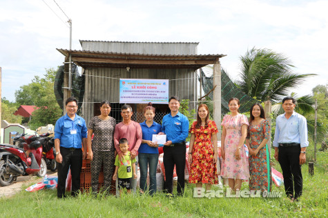 Tại lễ khởi công, anh Ngô Quốc Quận - Phó Bí thư Huyện đoàn, Phó Chủ tịch Hội LHTN Việt Nam huyện Vĩnh Lợi đã trao 50 triệu đồng cho gia đình chị Dương Thị Uyển Nhi. Được biết, số tiền này do Báo Bạc Liêu kết nối mạnh thường quân Huỳnh Trung Hiếu và những người bạn của anh hỗ trợ.
