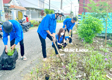 Trong khuôn khổ của Ngày cao điểm, ĐV-TN đã trồng 500 cây xanh, cắt tỉa hoa kiểng; phát quang bụi rậm… ở tuyến đường xã Phước Long giáp với xã Phong Thạnh Tây A.