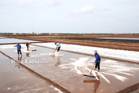 Diêm dân huyện Đông Hải thu hoạch muối.