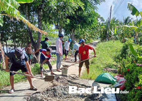 Đoàn thể huyện cùng xã An Trạch sửa chữa lộ nông thôn xuống cấp. Ảnh: T.T