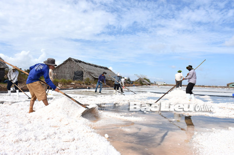 Diêm dân xã Điền Hải (huyện Đông Hải) nâng cao thu nhập từ mô hình muối trải bạt.